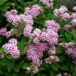 Цветовете на спиреята  са наситено розови.