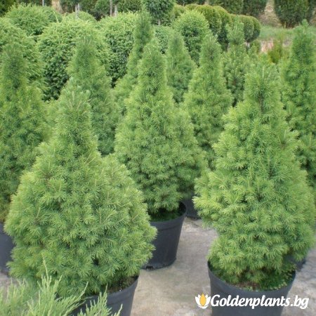Короната му е гъста и строго конусовидна, като се запазва добре през годините. Има сребристи, синкави и зелени форми.