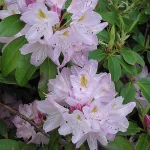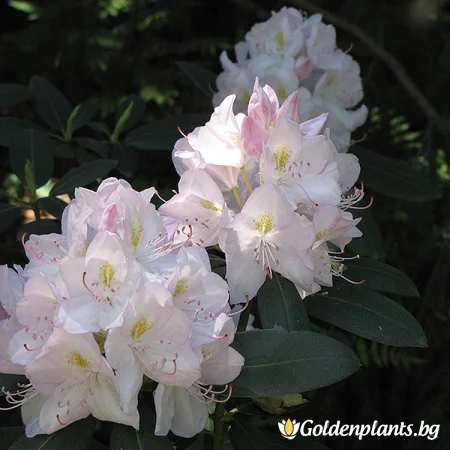 Сортът "Катавба Албум" е средно голям вечнозелен храст до около 2 м височина, с гъст хабитус и яйцевидни, лъскави тъмнозелени листа с дължина до 15 см. Произвежда големи групи от розови пъпки, отварящи се до камбановидни бели цветя, от края на пролетта до началото на лятото. Той е издръжлив вид с добра устойчивост на слънце