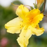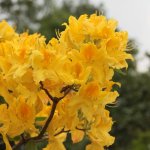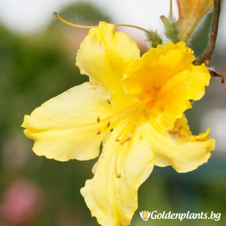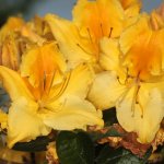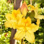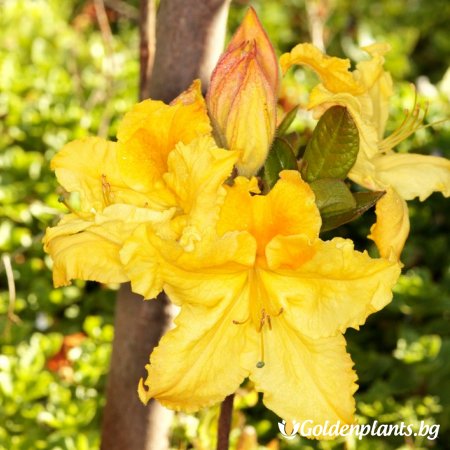 Азалия Марабела е сорт, който впечатлява със златисто-жълти цветя с оранжев център.