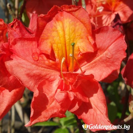 Азалия Сарина е сорт с големи, разперени, розови цветя.