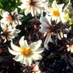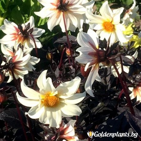 Далия Малък лебед е многогодишно растение с тъмно назъбени листа.