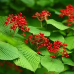 Яйцевидните, назъбени, със силни жилки, тъмнозелени листа имат нагънати горни повърхности.