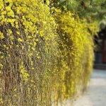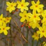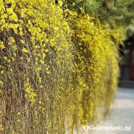 Jasminum nudiflorum, известно като зимен жасмин, е листопаден храст от семейство Oleaceae. Произхожда от Китай и се отличава с яркожълти цветове, които разцъфтяват през зимата или ранната пролет, често преди появата на листата. Стъблата му са дълги, тънки и зелени, което придава декоративна стойност дори през зимата. Зимният жасмин предпочита слънчеви или частично засенчени места и добре дренирана почва. Подходящ е за отглеждане като почвопокривно растение, по стени или перголи.