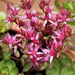 Нисък, пълзящ многогодишен сукулент с гъста, килимоподобна растителност. Листата са тъмночервени, което създава декоративен контраст през сезона, а през лятото се появяват малки розови цветчета. Подходящ е за алпинеуми, каменисти градини и като почвопокривно растение. Обича слънчево място и добре дренирана почва.