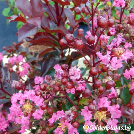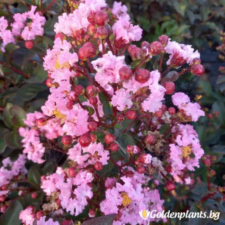 Индийски Люляк Рапсодия в Розово е декоративен храст с красиви, яркочервени до розови цветове, които цъфтят през лятото. Този сорт магнолия, част от семейство Lythraceae, има компактна форма и е известен със своето атрактивно цветово изобилие и дълготраен цъфтеж.