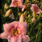 Hemerocallis Siloam French Doll е красиво растение, известно със своите елегантни цветове. Тези лилии имат големи, нежно розови цветя с жълт център и тъмни ленти по ръба на венчелистчетата. Цветовете се появяват през летните месеци и траят само един ден, но растението е известно със своето дълго цъфтене. Siloam French Doll е отличен избор за градини и декоративни засаждения, благодарение на своята ярка и атрактивна визия.