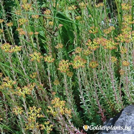 Sedum ochroleucum Cristatum е сорт на растението Sedum ochroleucum, което е известно със своите жълтеникаво-бели цветове. Терминът "Cristatum" обозначава специфичната му форма с извити или пламнали листа, които създават уникален вид. Това растение, като повечето видове от рода Sedum, е сукулентно и предпочита добре дренирани почви и слънчеви условия.